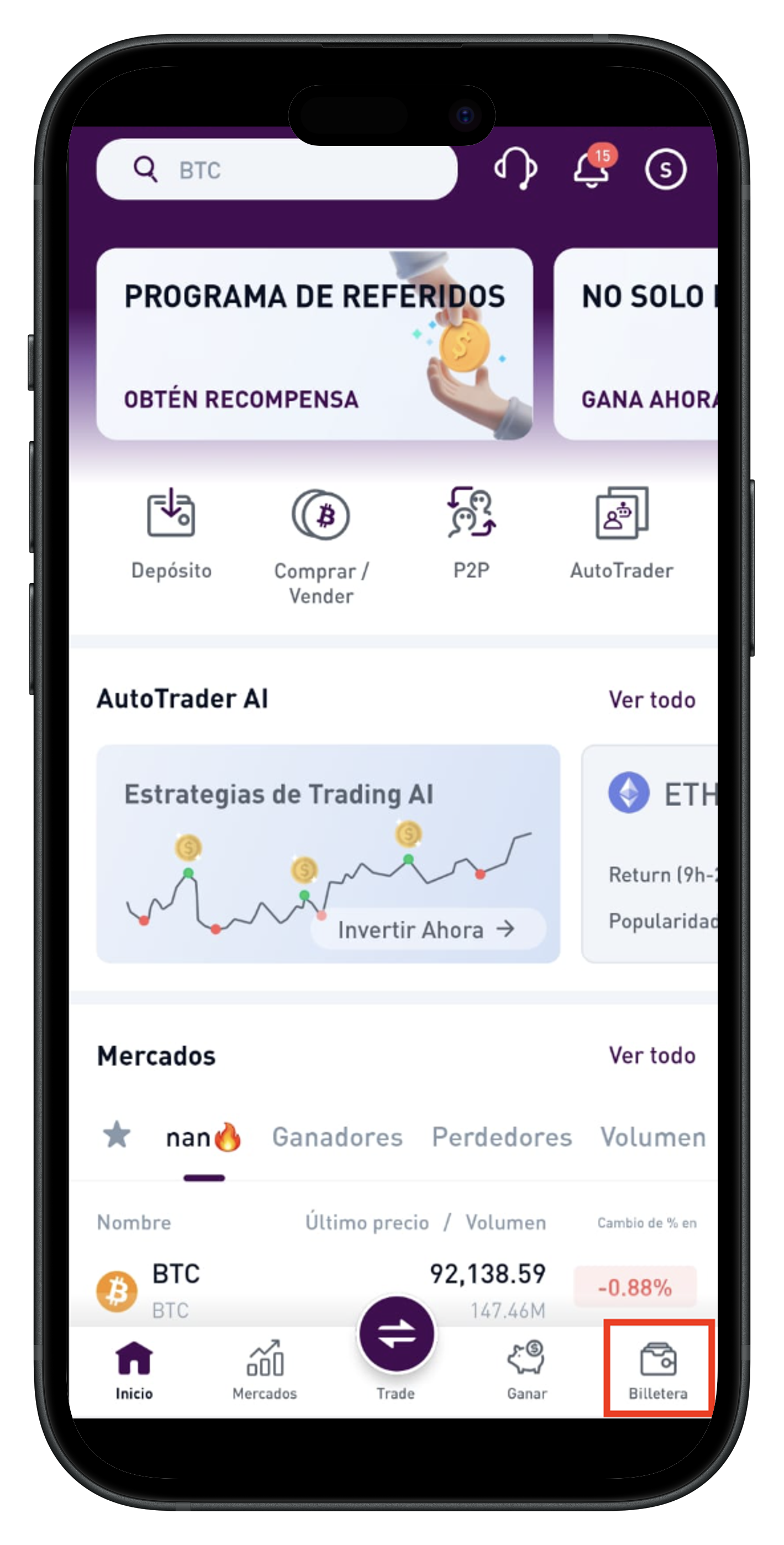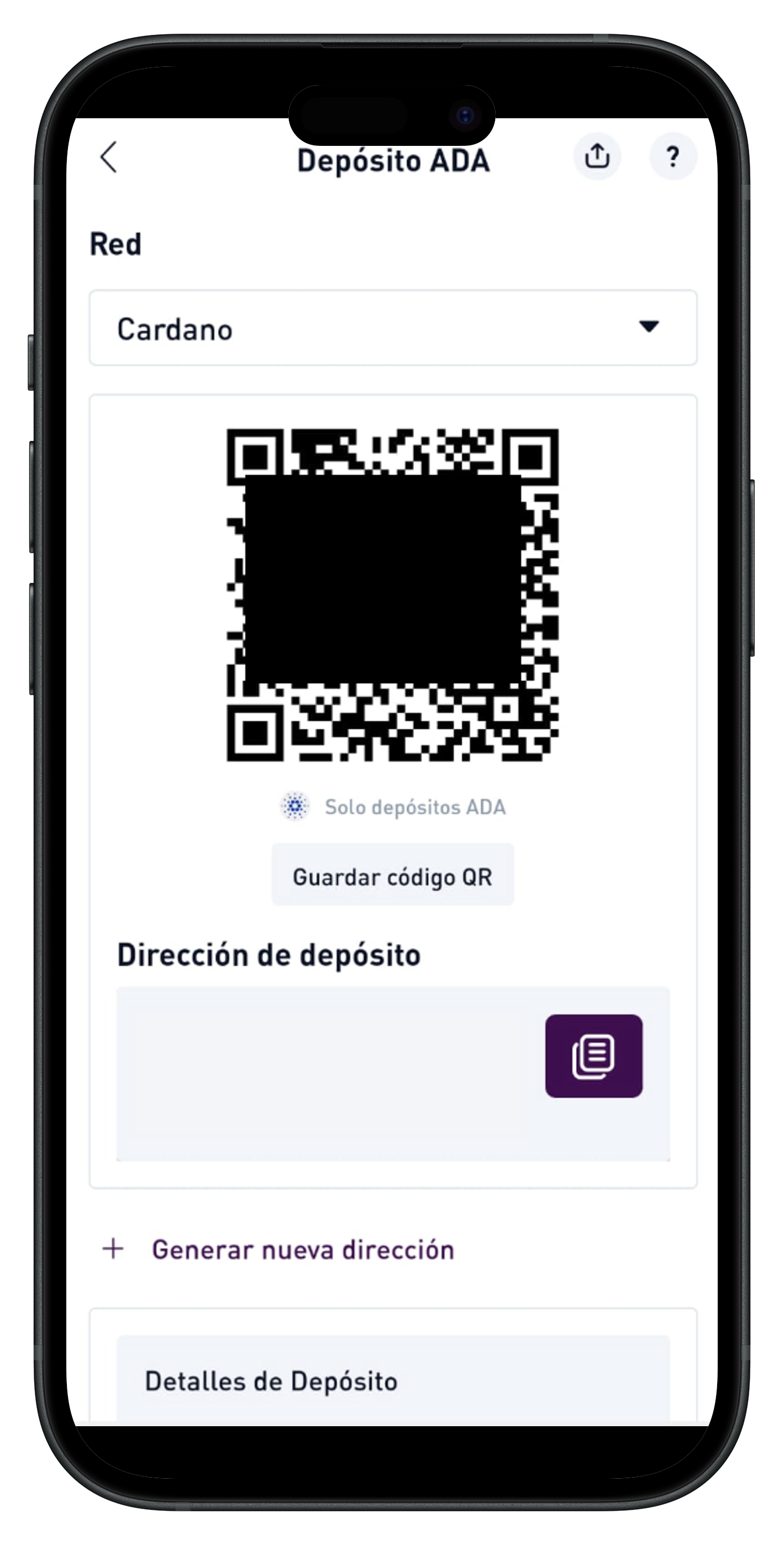 - Cómo hacer un depósito de criptomonedas a través de la aplicación.