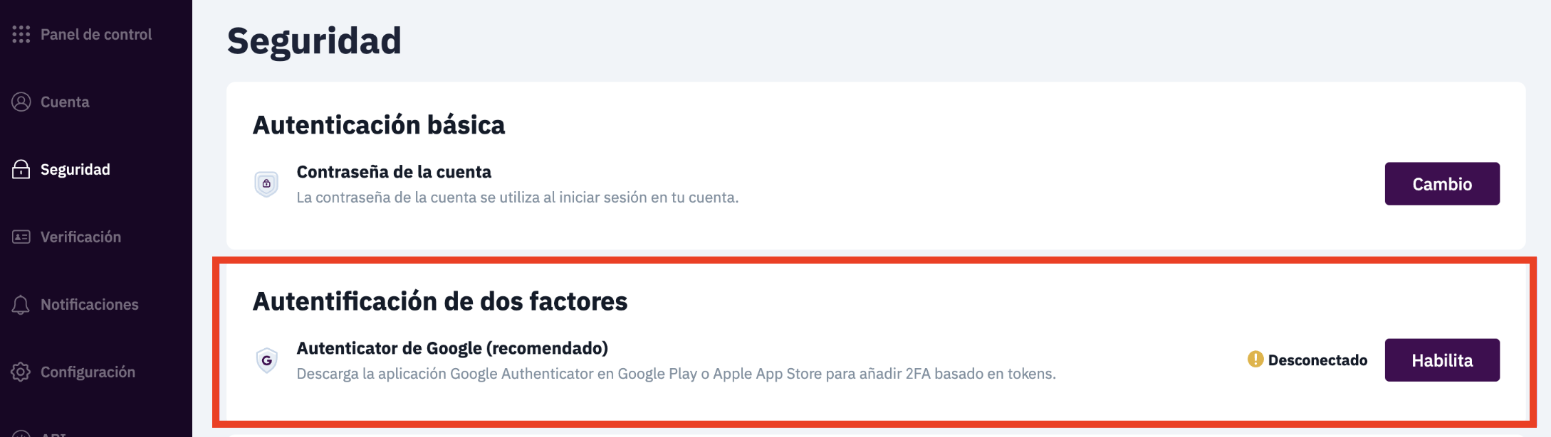 - Inicie sesión en su cuenta utilizando el código 2FA de la App de Google Authenticator.