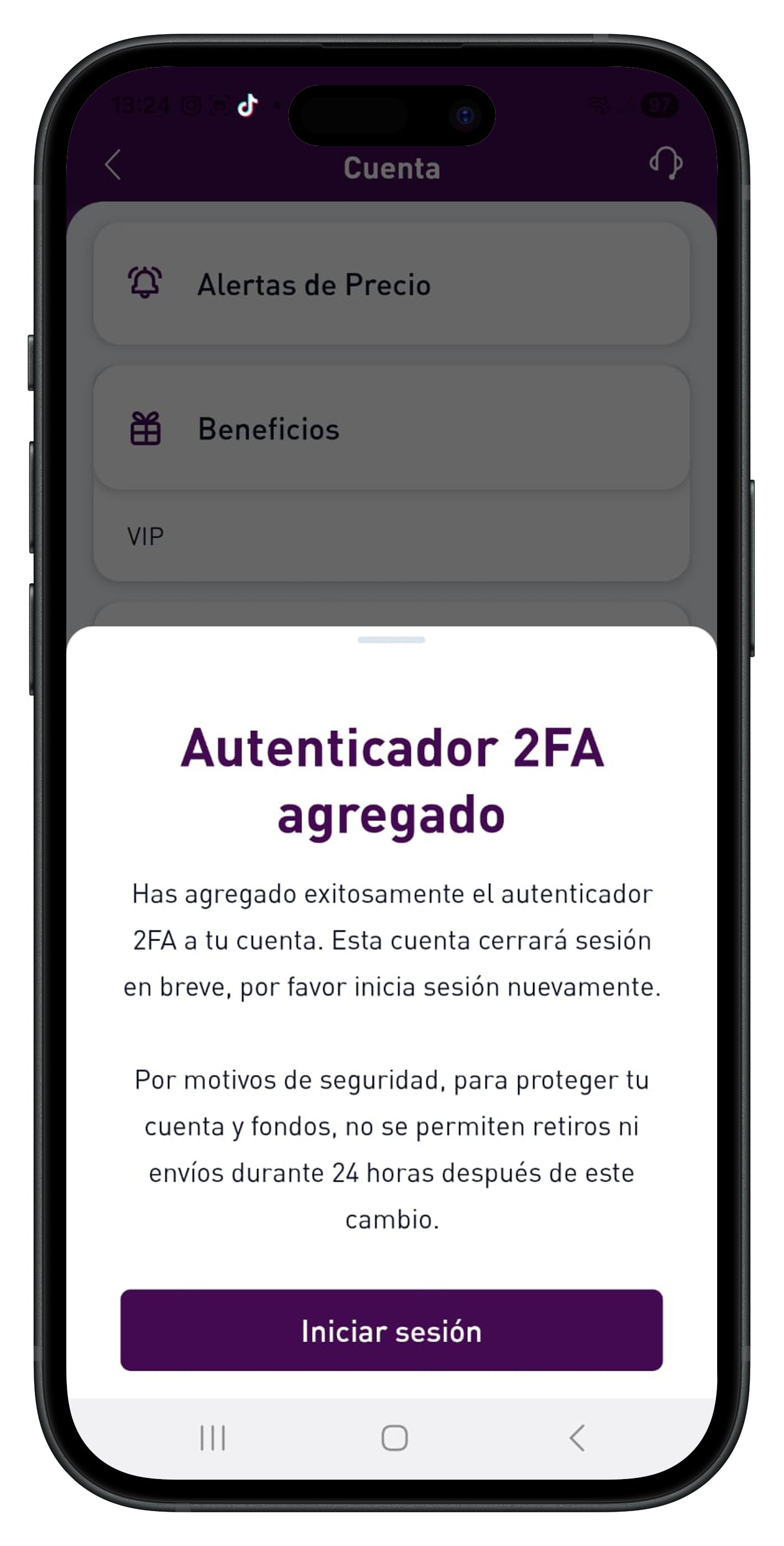 Una vez que se activa la 2FA en su cuenta, se le solicitará que ingrese un código único y sensible al tiempo cada vez que inicie sesión o inicie retiros.