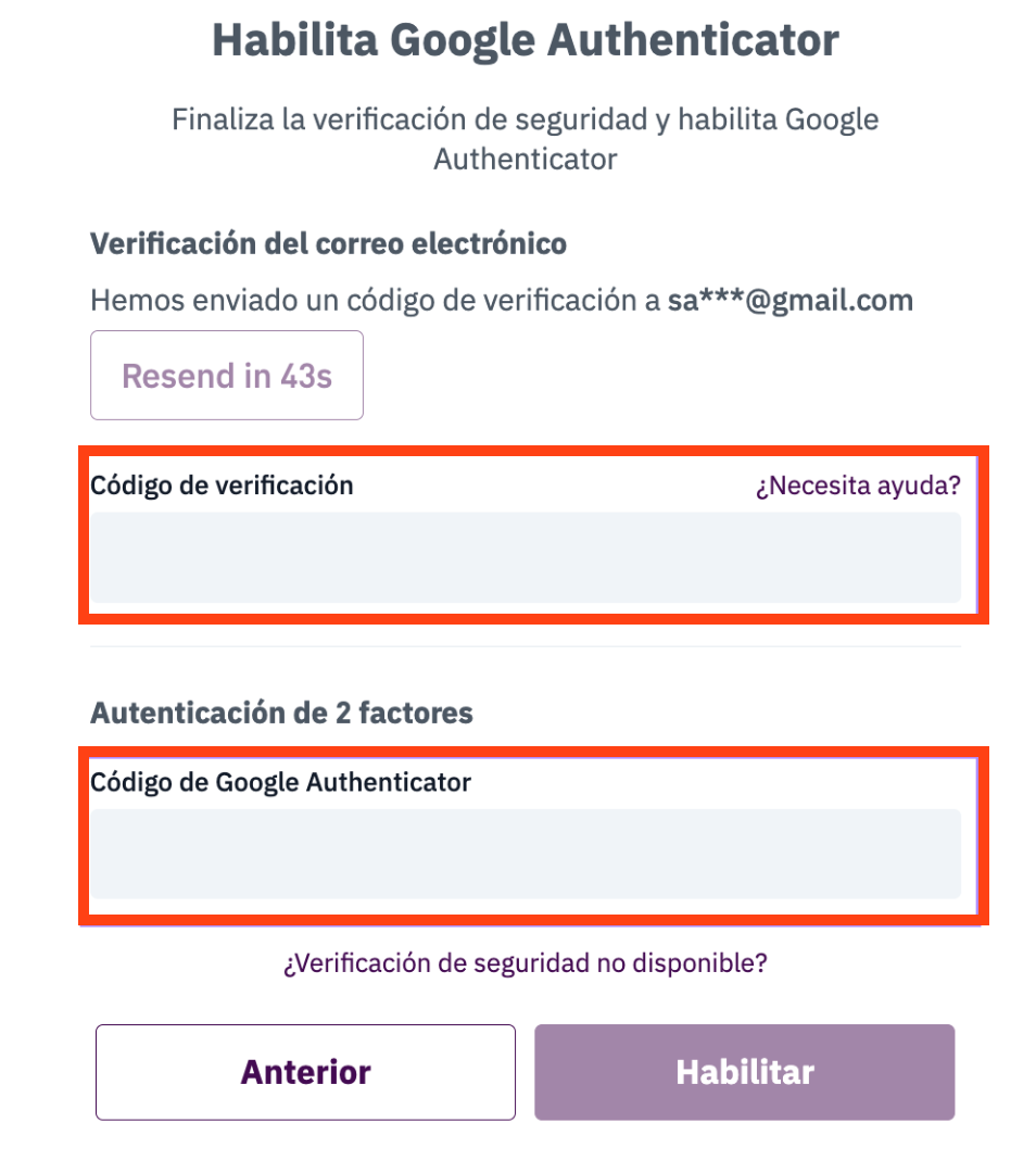 - Complete el código de verificación enviado a su correo electrónico y el código de la aplicación Authenticator.