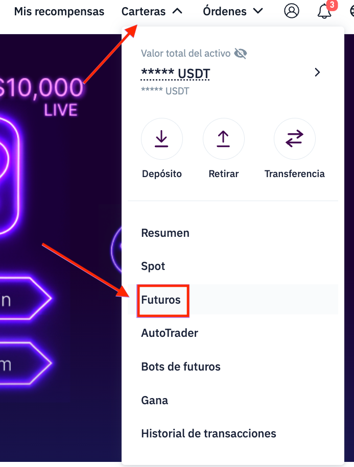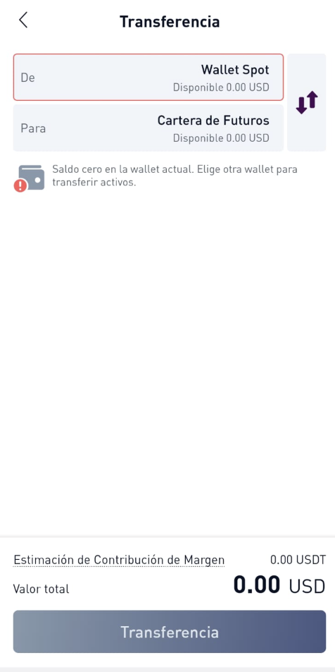 Para comenzar a operar con contratos de futuros, debe transferir fondos a su billetera de futuros .