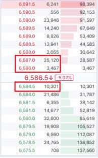- Precio medio de impacto = (6.586,65 + 6.584,5) / 2 = 6.585,58