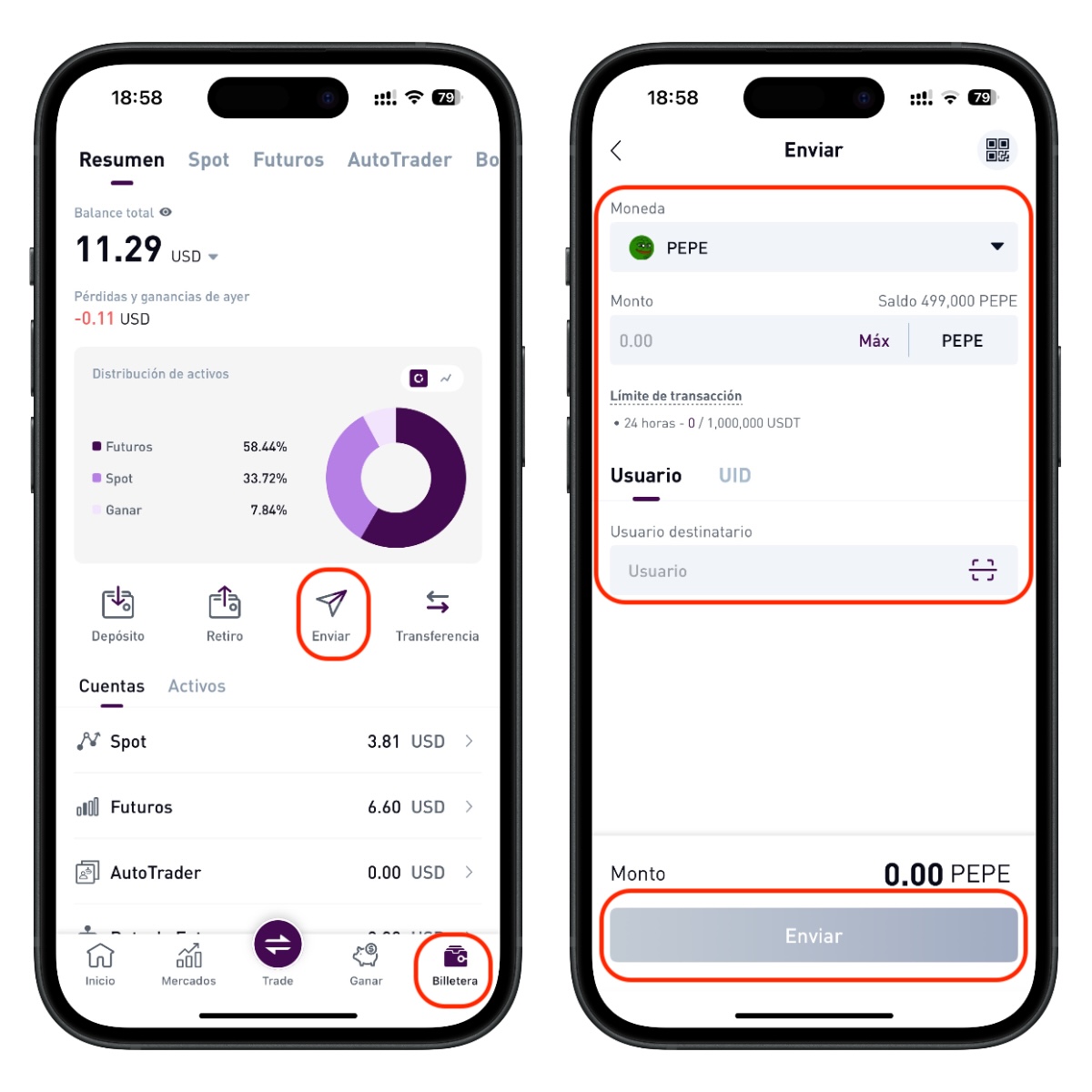 - Debes tener habilitada tu autenticación de dos factores (2FA) antes de poder usar la función Enviar a. Para más información sobre cómo configurar tu autenticación de dos factores (2FA), por favor visita el enlace "Cómo configurar tu Autenticación de Dos Factores (2FA)".
