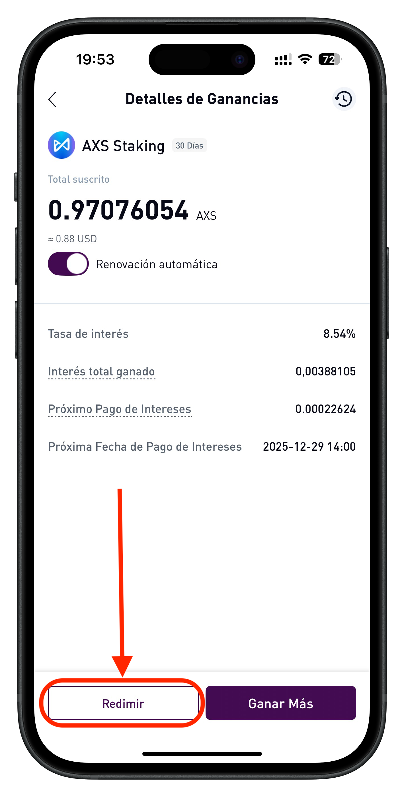 - Renovación automática activada: El staking requiere que la función de auto-renovación esté habilitada.