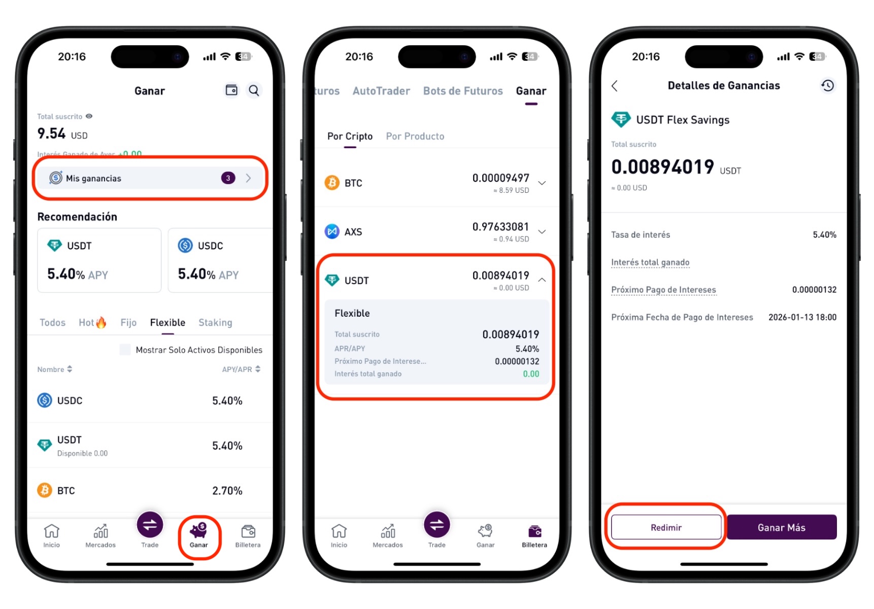 Con los ahorros flexibles de Freedx puedes rescatar tus fondos en cualquier momento. La tasa de interés es variable con pago de intereses compuestos. Las recompensas se acreditan todos los días a las 22:00 UTC después del primer pago. El interés compuesto se calcula sobre el depósito inicial más los intereses acumulados. En comparación con los intereses no compuestos, el rendimiento total de la inversión es mayor cuando se aplica el interés compuesto.