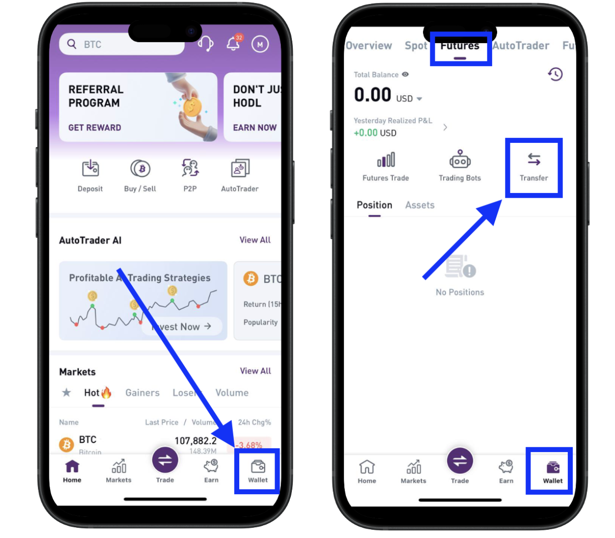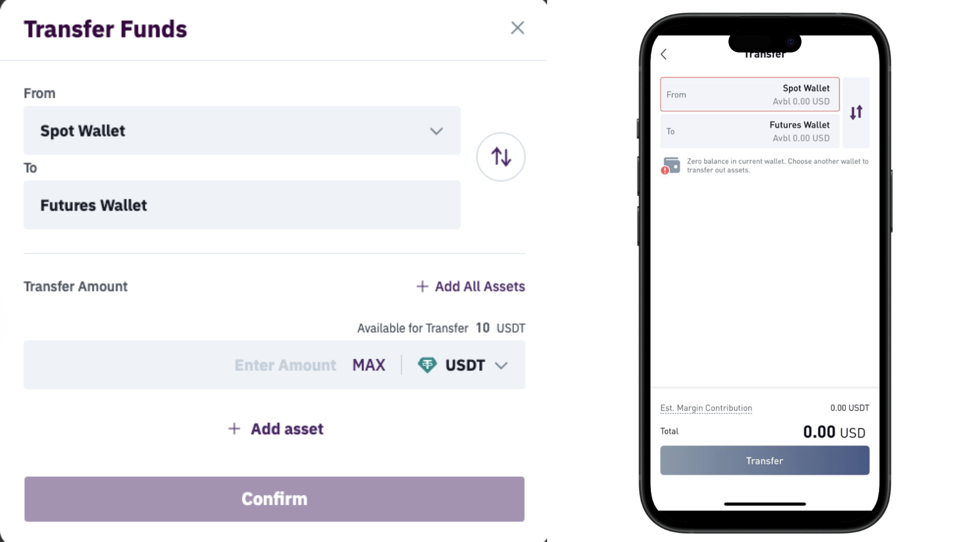 In order to start trading Futures contract, you need to transfer funds to your Futures wallet.