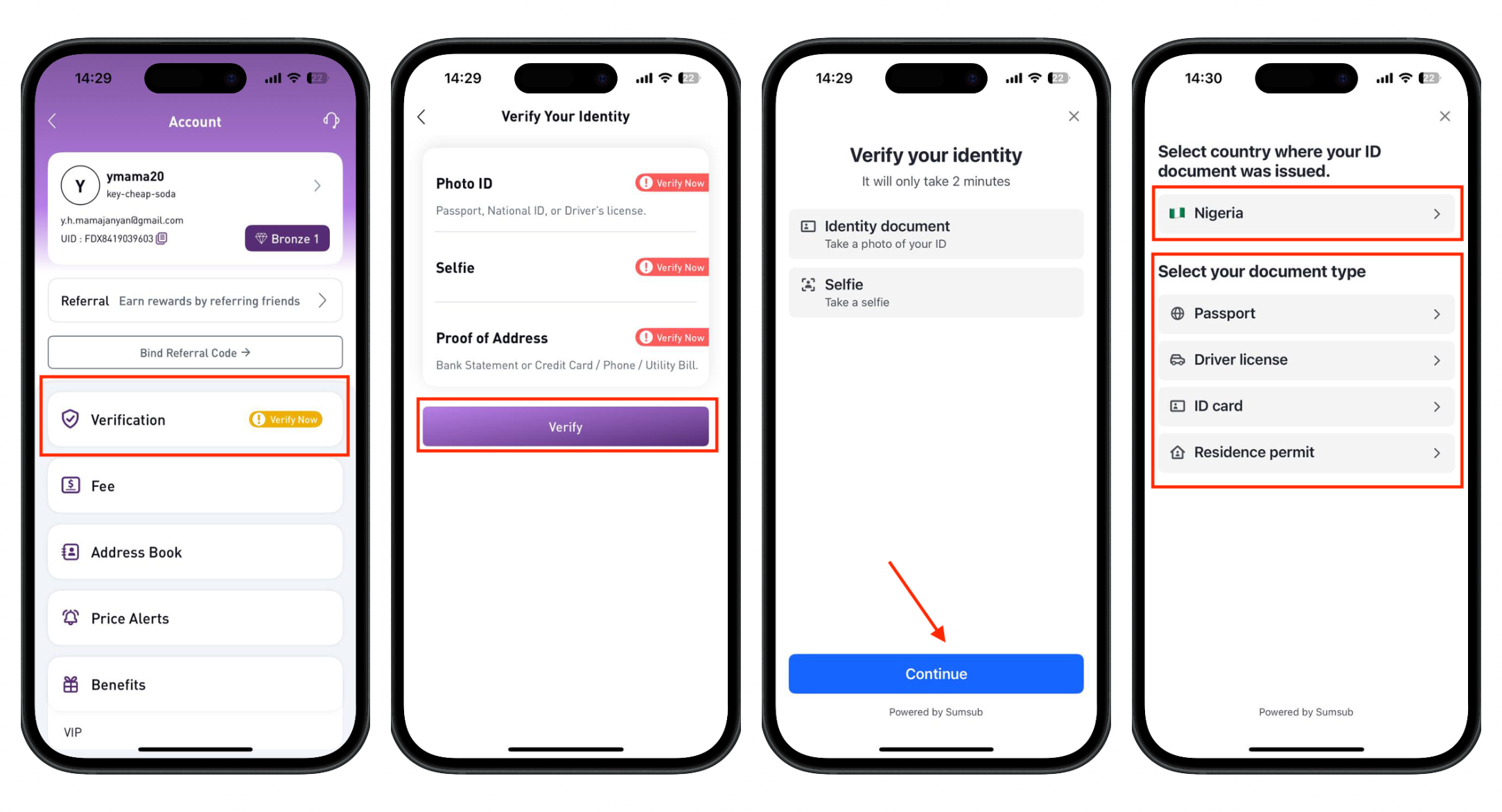Freedx’s identity verification process (Know-Your-Customer, or KYC) ensures compliance with AML laws, builds user trust, and enables access to all platform features, and promotions. Before starting the KYC verification, please ensure you have the following documents ready: