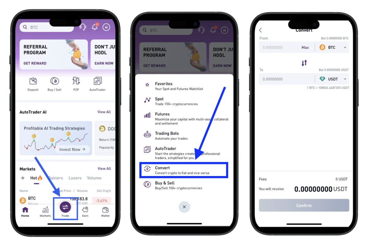 This quote-based trading system ensures clarity and control, allowing users to confirm prices before executing any trade. It’s an intuitive and secure way to buy or sell crypto instantly without needing to interact with the open order book.